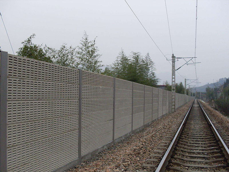 常用的鐵路聲屏障根據(jù)材質(zhì)不同可以分為三種:水泥聲屏障(輕質(zhì)高強水泥聲屏障)金屬吸音板和透明隔聲板。輕質(zhì)高強水泥聲屏障:吸隔音板采用先進技術和原材料生產(chǎn)的高效吸聲降噪產(chǎn)品,技術性能處于國內(nèi)先進水平。結(jié)構類型多樣,外形美觀?蓾M足不同的設計要求,廣泛運用于高速公路,鐵路,高架橋及工業(yè)廠界噪音治理工程;金屬吸聲板:面板采用鍍鋅金屬板,板厚常用0.8-1.0mm,吸聲板背板采用鍍鋅板,板厚0.8-1.0mm;吸聲填料采用48kg/m3離心玻璃棉,外包0.1mm厚度的杜邦薄膜。支撐鋼龍骨采用鍍鋅板不小于1.2mm,龍骨橫向間距≤60mm。金屬吸音板高溫,耐潮濕,耐高速氣流沖擊。具有穩(wěn)定的吸聲性能,平均吸聲系數(shù)大于0.60,降噪系數(shù)NRC0.60左右,符合道路聲屏障聲學要求;透明隔聲板:透明隔聲板一般采用pc耐力板、亞克力板。透光率:PC耐力板的透光率為85%至90%之間與玻璃相當。耐候性:一般PC耐力板材長期暴露室外,受紫外線照射易引起黃變及表層劣化。高鋒PC耐力板表面附有一層抗UV層,即使長期暴露室外,其光學,機械性能均無顯著變化。聲屏障專用PC板的抗化學性聚碳酸酯在常溫下對弱酸、弱堿及醇類的抵抗性能良好,聲屏障專用PC板的重量輕,PC耐力板的隔音效果比玻璃高3-4DB,隔音屏障的透明隔音材料的首選材料,PC耐力板已被廣泛應用于高速公路聲屏障、高架橋聲屏障、快速路聲屏障、鐵路聲屏障、軌道交通聲屏障、高鐵聲屏障、小區(qū)隔音屏障等聲屏障工程中。