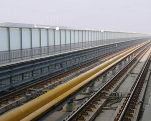 鐵路隔音墻主要由鋼結(jié)構(gòu)立柱和吸隔聲屏板兩部分組成,立柱是聲屏障的主要受力構(gòu)件,它通過螺栓或焊接固定在道路防撞墻或軌道邊的預(yù)埋鋼板上;吸隔聲板是主要的隔聲吸聲構(gòu)件,它通過高強(qiáng)彈簧卡子將其固定在H型立柱槽內(nèi),形成聲屏障。聲屏障的設(shè)計(jì)已較為充分地考慮了高架高速道路、城市輕軌、地鐵的風(fēng)載、交通車輛的撞擊安全和全天候的露天防腐問題。